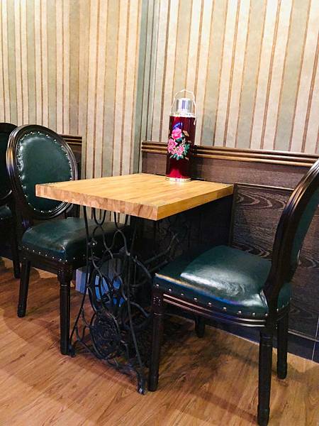 【店裡吧檯前方桌子小巧思,使用的是裁縫桌,感受不錯】