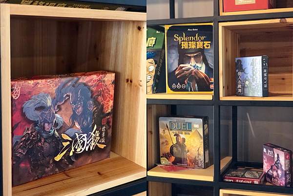 拍完準備回座位時,眼尖的我還發現店內也有擺放桌遊供大家一起玩(桌遊與用餐都不限時間喔~),這時餐點已陸續上桌,出餐速度算滿快的,先上的是我點的『炙燒豬排佐花生醬帕里尼』搭配了兩種醬,一是山賊醬主要是搭配炸物食用、另一是特製花生醬則是搭配竹碳土司,軟硬適中的里肌肉片搭上新鮮的生菜及甜洋蔥,清爽的口感讓人胃口大開,另外附贈的炸物沾山賊醬也是一番滋味!還點了一杯玫瑰鮮奶,原以為玫瑰味會蓋過奶茶味,但經過攪拌後,發現居然喝的到奶茶味但又帶有玫瑰香氣,難怪服務員會說是女性必點飲品。